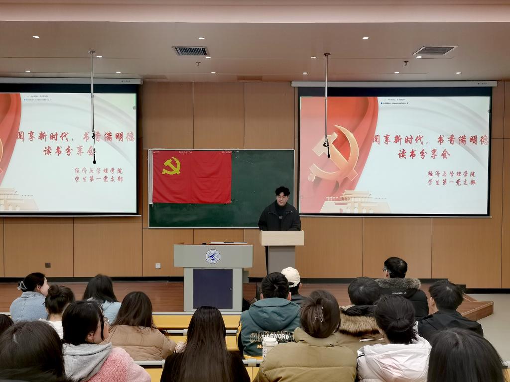 为教育引导广大学生党员学习榜样、争当先进,主动作为、担当有为,以优良作风打造“学在明德”的优良学风。12月28日,经济与管理学院学生第一党支部在7号教学楼101开展集中学习暨“阅享新时代、书香满明德”主题读书分享会,支部党员、入党积极分子参与了活动,活动由党支部副书记句宇坤主持。