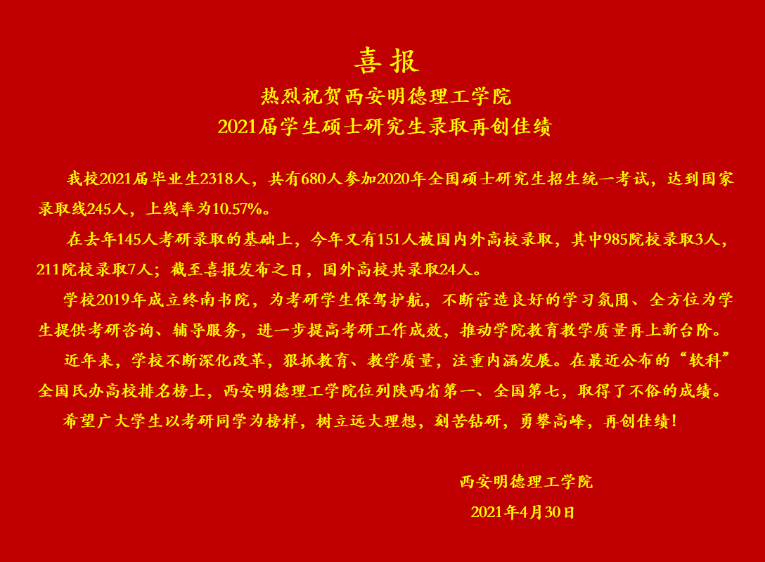 喜报!热烈祝贺博业体育(中国)2021届学生硕士研究生录取再创佳绩